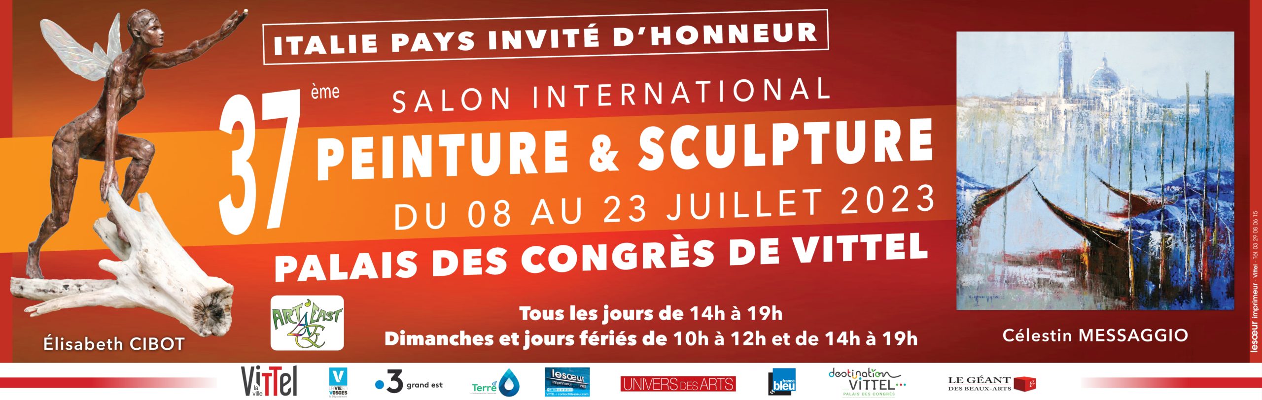 C’est ce cadre privilégié que l’association Art’East choisit tous les 2 ans en l’élisant siège de son très beau salon de peinture et sculpture, renouvelant ainsi toute sa confiance à notre ville. C’est avec une grande joie que Vittel offre, pour la 37ème année, la possibilité à tout un chacun d’admirer les oeuvres exposées au Palais des Congrès de grands artistes mondialement connus, venus de la région, de toute la France et de l’Europe, de deux merveilleux invités d’honneur et de l’Italie comme pays invitée d’honneur qui envoie une délégation d’artistes venus des quatre coins de la péninsule. J’espère que l’édition 2023 constituera une année mémorable. L’ensemble de la municipalité vittelloise se joint à moi pour saluer très chaleureusement les artistes et les bénévoles impliqués dans l’organisation de ce salon, qui donne à notre ville une opportunité supplémentaire de rayonner au-delà de notre territoire. Je souhaite bon courage au jury qui devra attribuer les différents prix aux 216 artistes attendus à cette occasion : les sculpteurs, peintres, aquarellistes, pastellistes et photographes qui présentent près de 500 oeuvres du classique au moderne débridé. Je leur adresse mes voeux de réussite et remercie l’ensemble des acteurs de rendre visibles leurs incroyables talents aux yeux du plus grand nombre